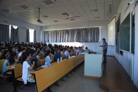 随后,ATWILL教授以“Implementing Produce Food Safety at the Farm Level”为主题作了报告。他立足于美国食品生产与安全管理实践,结合中、美两国新颁布的《食品安全法》的比较,全面细致地概括了食品在制作过程中容易出现的各项安全问题,并从食品产地说起,仔细分析了在食品生产的各个阶段如何保证食品安全。此外,ATWILL教授结合现实实例,如食品生产水源问题、农家肥处理问题等,与同学们积极交流,引导同学们积极思考,活用所学知识,解决现实问题。报告从食品安全生产源头一个个细小的实际问题出发,非常接地气,拓宽了同学们的科研思路,也引起了与会师生的共鸣。