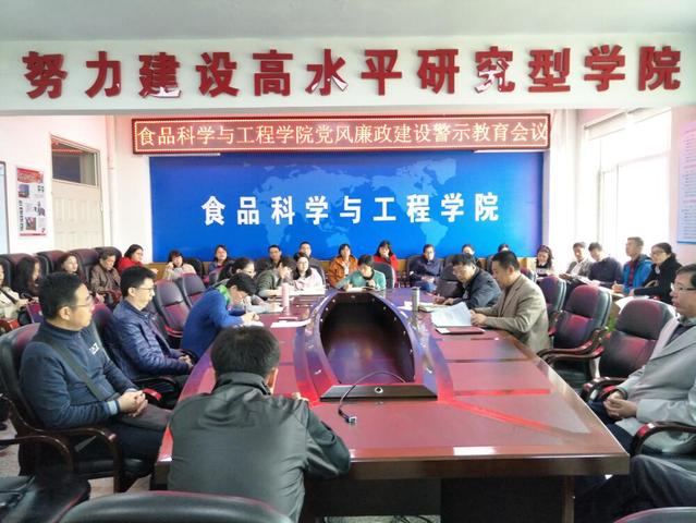 在食品楼三楼会议室召开了党风廉政建设警示教育会。学院全体教职员工参加了会议。会议由党委书记高福和同志主持。