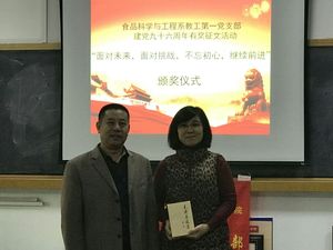 本次的主题党务活动中,首先由食科系教工第一党支部书记于亚莉同志对本次活动进行总结,然后由一等奖获得者潘风光同志诵读了他的征文,最后,学院党委书记高福和为获奖同志颁奖并对本次活动给予肯定的评价。