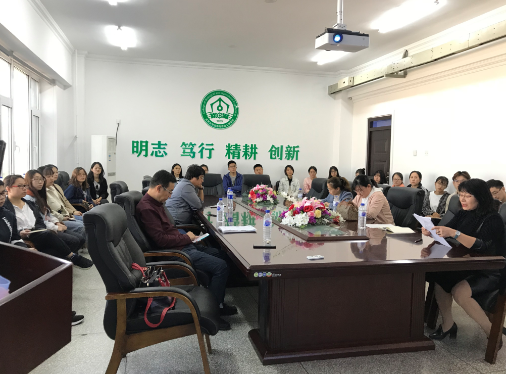 基层党支部“对标争先”建设计划任务书的工作计划安排,食品科学与工程系教师第二党支部,于2019年9月24日12点在南岭校区交通楼生物与农业工程学院的410会议室召开了“不忘初心,牢记使命,强化业务 ,齐心奋进” 为主题的“党建+业务培训”主题教育党日活动。参加党员7人,请假2人。参加的本院各级硕士研究生21人。共计29人参会。本次活动由党支部书记李欣欣主持。大会进行了二大内容。(1)科研业务培训。由科研工作突出的本支部的党员黄卉同志首先对科研项目的开展进行了详细的经验介绍。然后又对出国前的准备工作进行了经验分享。通过这次科研业务培训,对文献阅读、一个学术工作的产生流程、文献积累过程、论文写作的前期工作等工作有了深入的了解和启迪,大家感觉受益匪浅,对黄老师的真诚的经验介绍给以热烈的掌声和感谢。(2)由李欣欣书记就立德树人要求教师应该演好“六个角色” 进行了详细的解读。“六个角色”就是教师的“三导”角色、 “朋友”角色、“医生”角色、“模特”角色、“企业家”角色、“学生”角色;并与研究生们就“新时代的研究生在学习期间应该演好几个角色?”为问题,展开了热烈的互动讨论。通过研究生们的发言,李欣欣书记最后做了归纳性总结,新时代的研究生应该演好“学生、职员、领导者、合作者、奉献者、创新者、专业知识的传播者、朋友和孩子等八个角色。最后李书记送给研究生16个字:不忘初心,方得始终,自强不息,莫负芳华。为期约1个半小时的活动,达到了预期的效果。大家感觉很有收获,受益匪浅。本次活动旨在与通过学习好的经验和新时代教师的理念,提升本支部党员的科研业务能力和教师的综合素质,党员教师能够更好地完成新时代教师的历史使命。三尺讲台存日月,一支粉笔学春秋。不忘初心,牢记使命,充分发挥支部的战斗堡垒作用和党员的先锋模范作用,通过集体学习,强化业务。促进支部党员齐心奋进,为我国的教育事业和学院的发展做出我们应做的贡献。