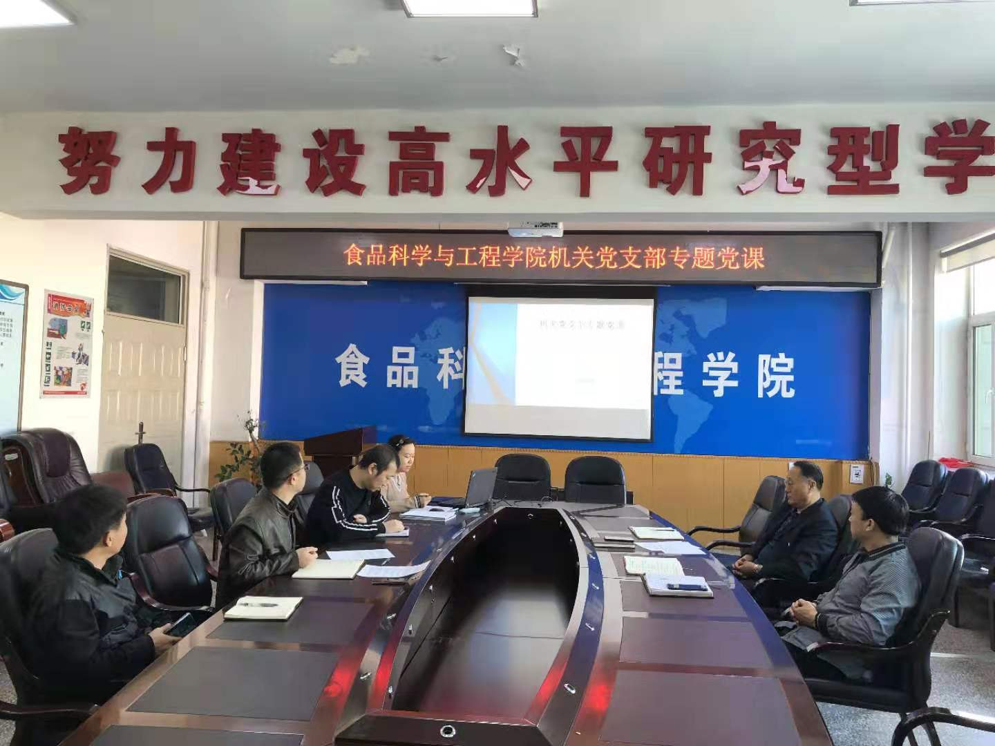 机关党支部在食品楼三楼会议室召开“不忘初心、牢记使命”主题教育专题党课,机关党支部全体党员参加了会议。会议由党支部书记马爽同志主持。