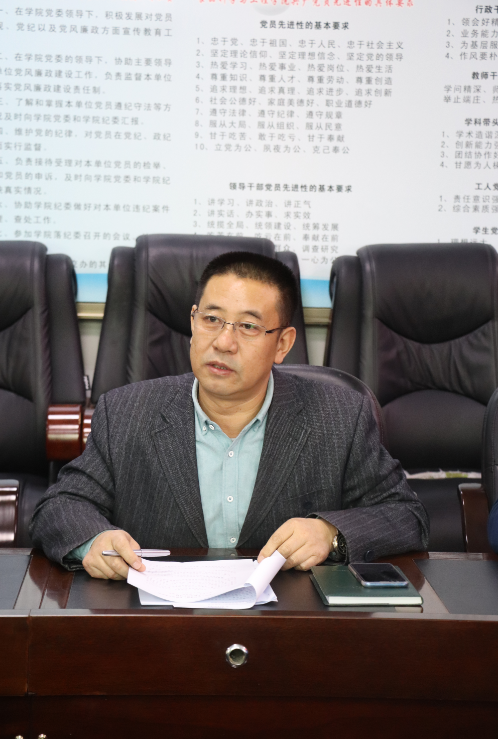发展建设的关爱与关怀。高书记代表学院领导班子诚恳表态,一是要持续强化守初心、担使命意识,把“不忘初心、牢记使命”主题教育作为领导班子建设的永恒主题,抓班子,带队伍,以勇于担当的责任意识和拼搏进取的奋斗精神推进学院建设发展;二是要巩固好主题教育成果,把“不忘初心、牢记使命”主题教育作为党员领导干部的终身课题,永远牢记初心使命,真正把主题教育成效转化为干事创业的实际成效;三是要切实抓好整改落实,坚持问题导向,做到久久为功,回应师生期盼。