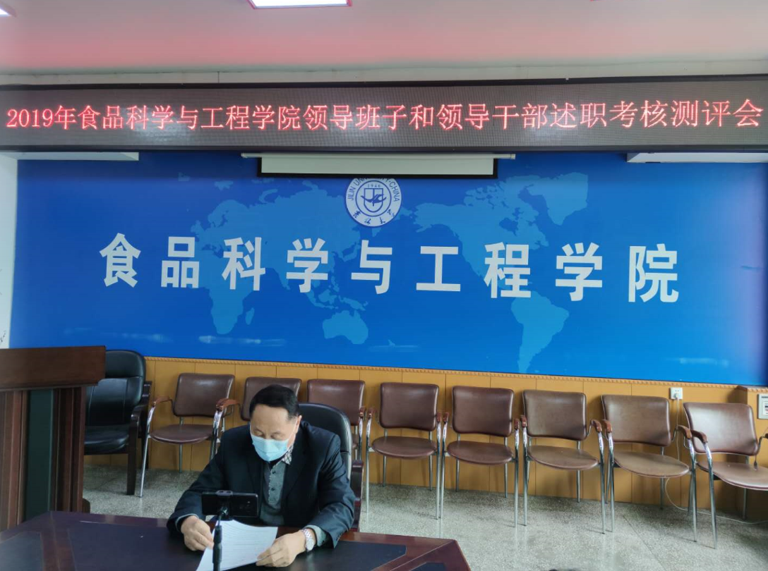 在食品楼三楼会议室召开了学院全体教职工及学生代表视频会议,进行学院领导班子和领导干部述职测评。学院领导班子成员、全体教职工及学生代表共70人参加了视频会议,会议由学院党委书记高福和同志主持。