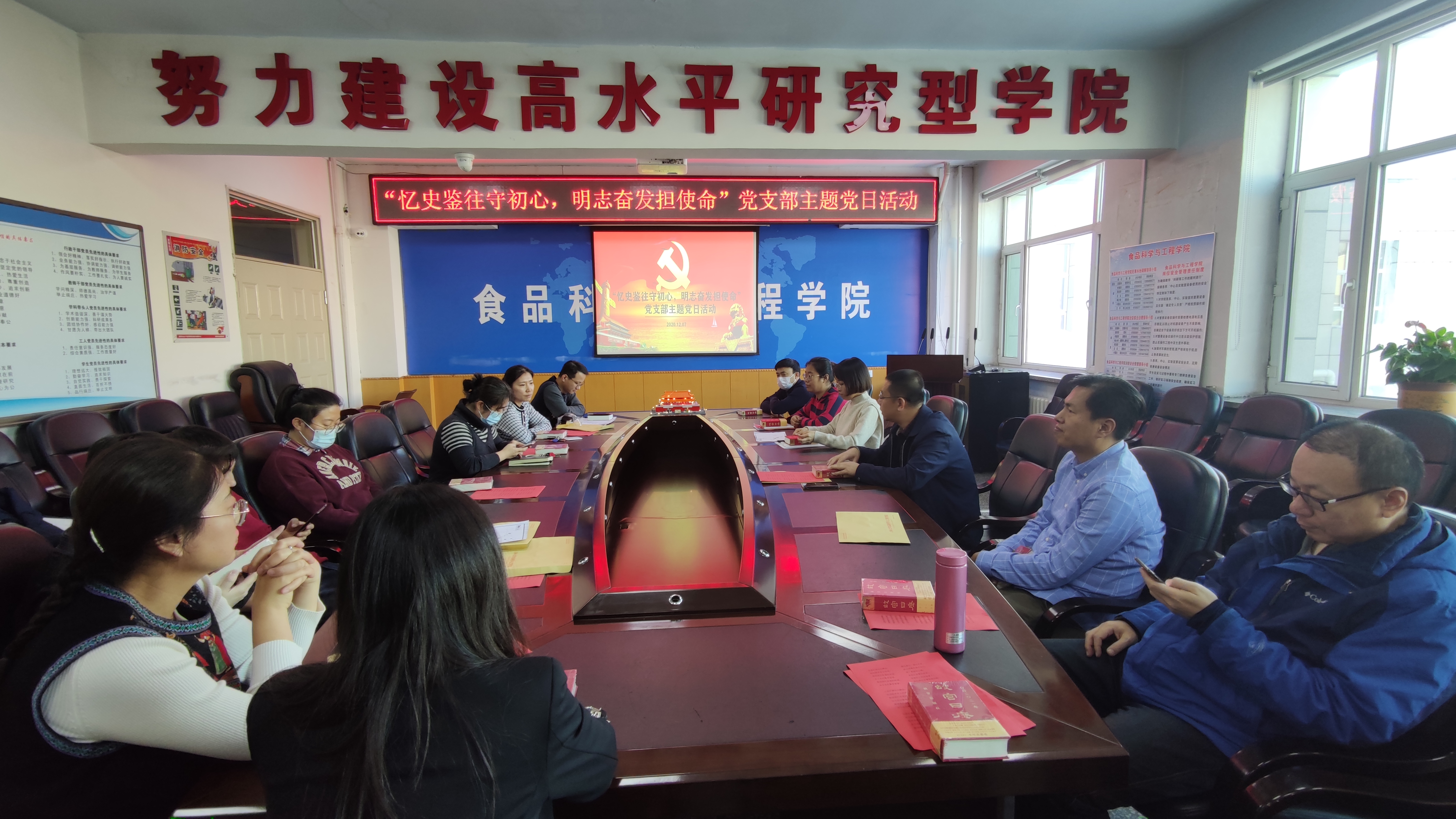 机关党支部与食品质量与安全系教师党支部在食品楼三楼会议室举办“忆史鉴往守初心,明志奋发担使命”主题党日活动。主题党日活动由学院机关党支部书记马爽同志主持。