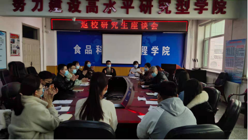 于3月15日下午1时30分在食品楼三楼会议室召开返校研究生座谈会。学院党委书记董怀智,学院研究生办公室王军主任、研究生会同学和各年级硕士、博士研究生代表参加会议。