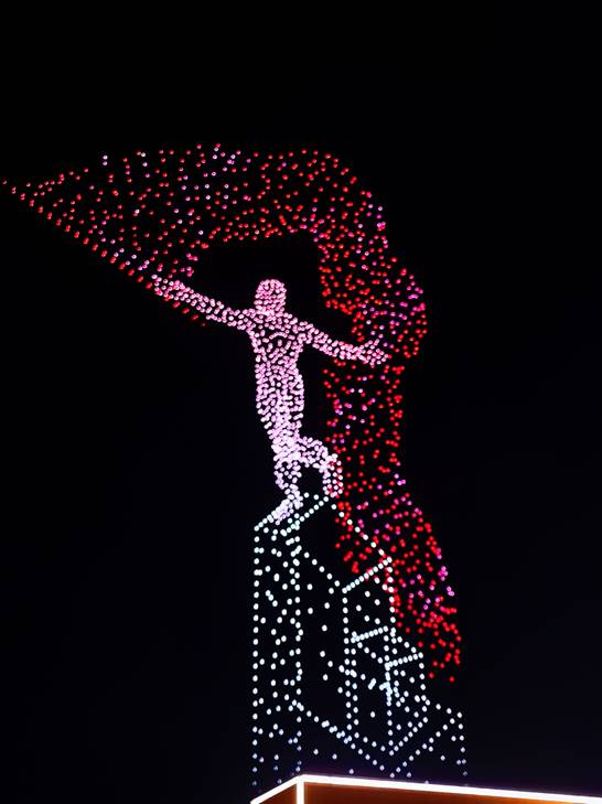 2022年8月27日19时,随着优美的旋律,激昂的解说,2022架无人机在多彩的灯光映衬下,在长春友谊公园上方有序地腾空而起,好似漫天飞舞的流星,让人仿佛置身于科幻电影的拍摄现场。“奋斗者”雕塑、红旗轿车、国际汽车城、现代农业城、“双碳”示范城、科技创新城、新兴消费城、文化创意城的画面在2022架无人机的队形变幻和灯光变化中一一呈现,在天空中描绘出一幅幅壮丽的画卷。尤其是最后一组无人机灯光表演画面“长春——感恩有你”出现在夜空时,现场更是响起雷鸣般的掌声。本次表演有起落交错的队形、魔幻的灯光、优美的旋律,久久回荡,让同志们感受到了科技的震撼。