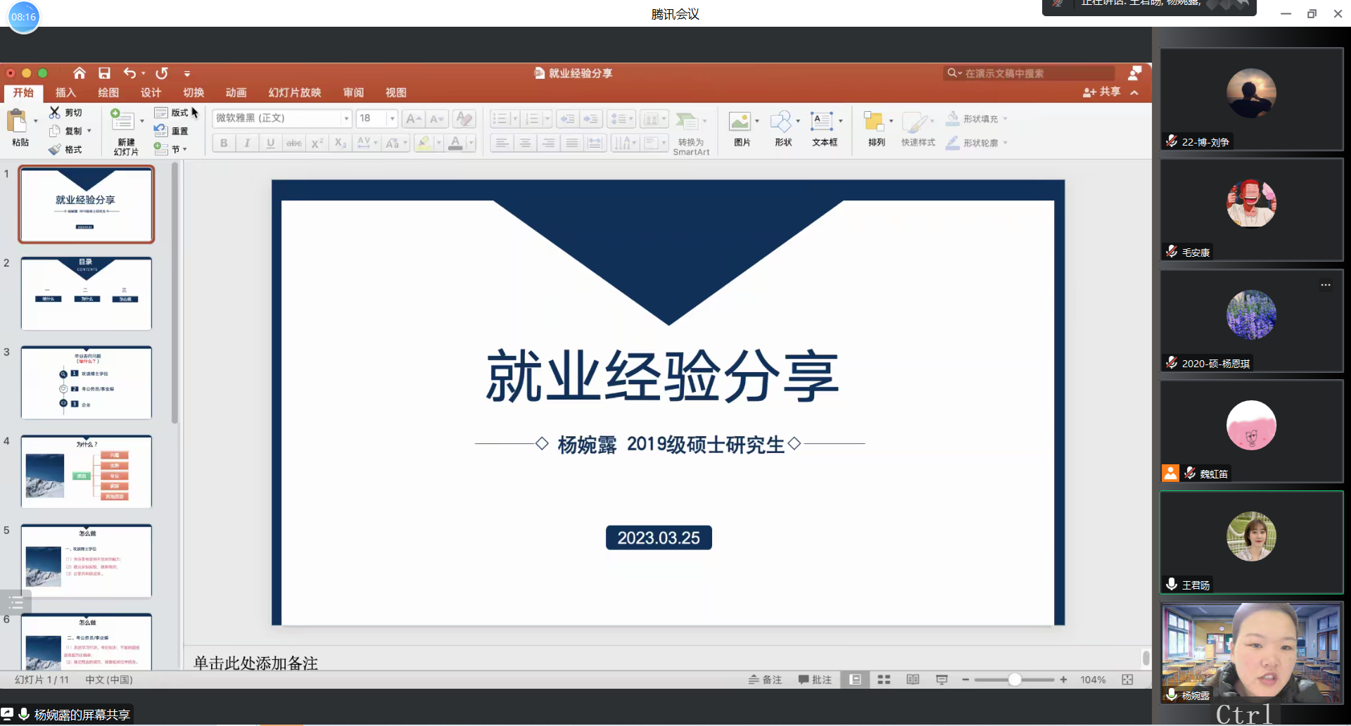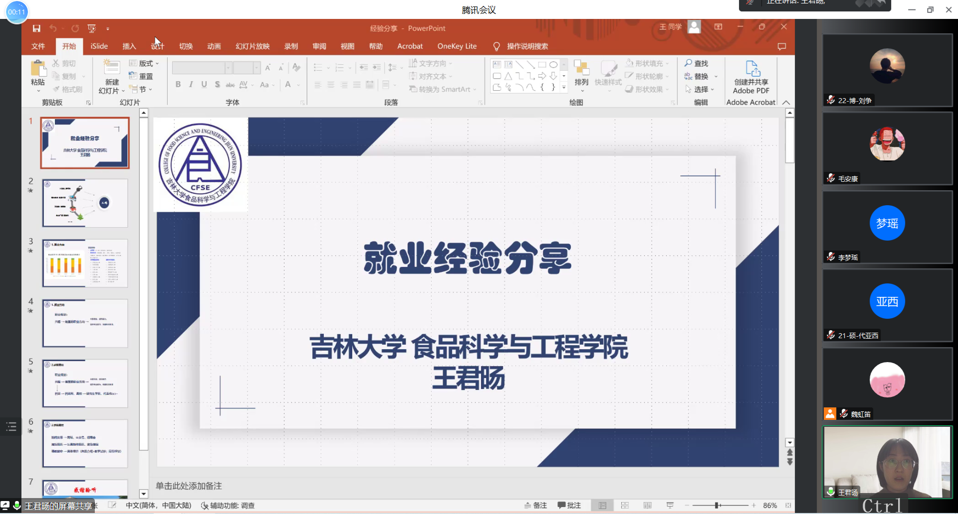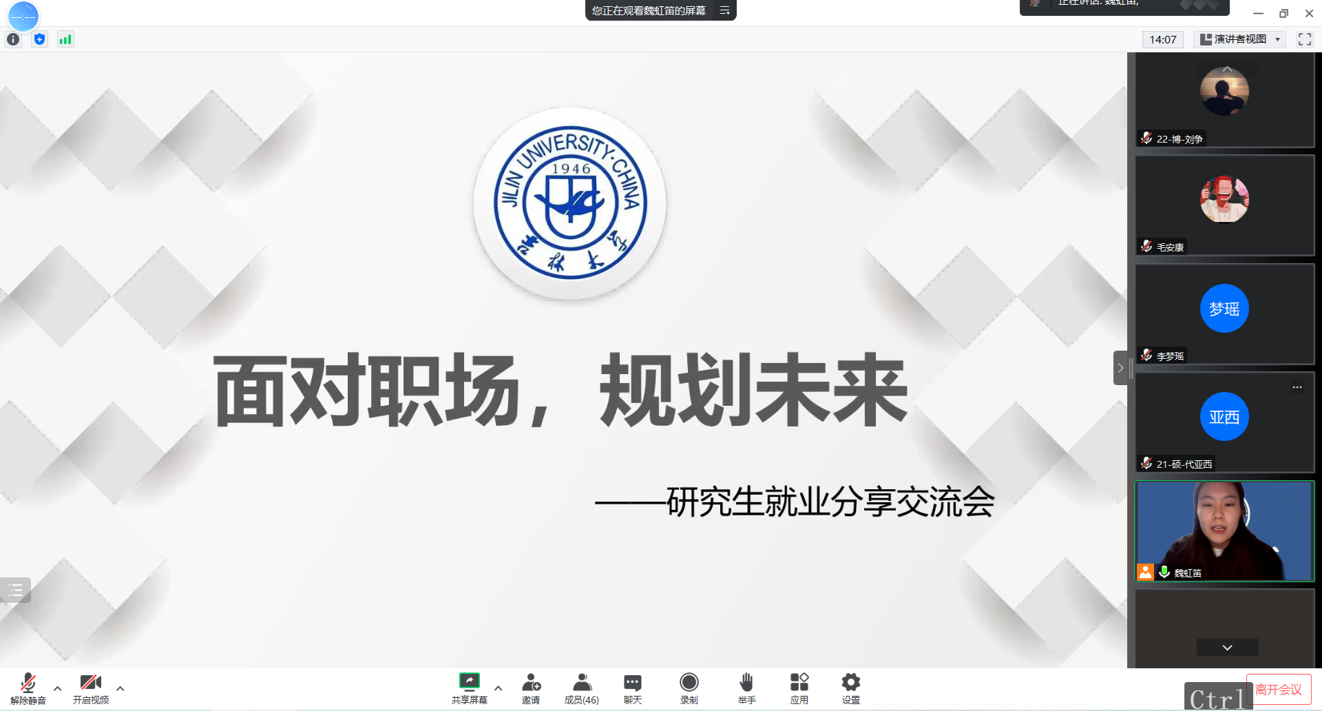 研究生会邀请三位2022届优秀毕业研究生,通过腾讯会议面向全体研究生开展了主题为“面对职场,规划未来”就业经验分享会。