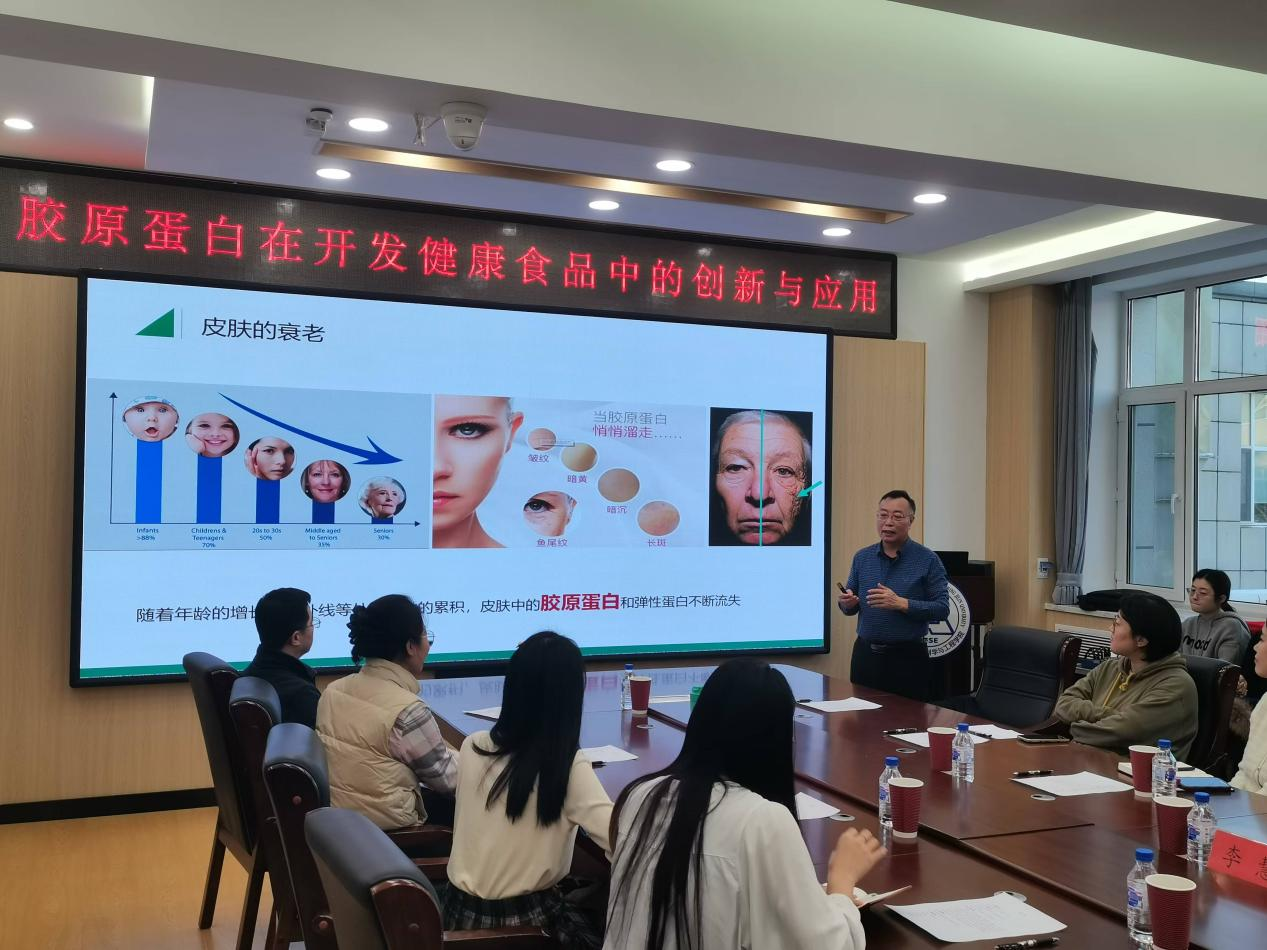 在互动环节中,赵教授与现场师生就当前研究热点、技术挑战以及未来应用前景进行了深入的讨论与交流。此次报告给予了大家溯源与原料选择、产业化过程中的关键指标和靶向性与机制研究方面的宝贵启发,拓宽了大家在食品科学与工程领域的学术视野以及产业化实践经验,为胶原蛋白开发、创新应用提供了体系化研究、成果转化及产业化示范。