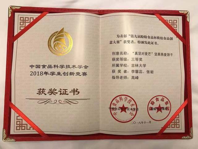 2018年11月07日,中国食品科学技术学会第十五届年会学生创新活动经初赛、复赛层层选拔,于在山东省青岛市举行颁奖仪式。bl动漫