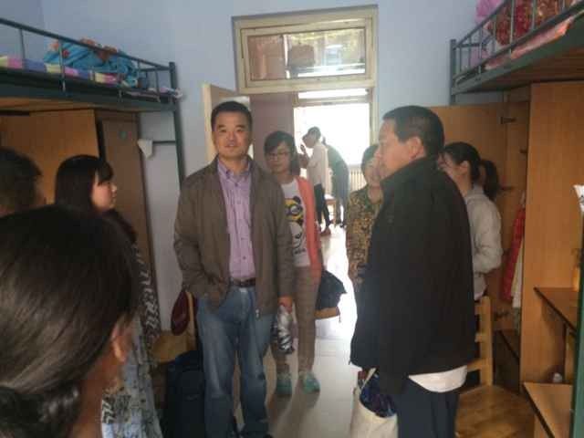 党委副书记梅士伟,2015级辅导员金鑫老师前往大学城二、三号新生公寓,带着对2015级新生的牵挂和祝愿,走访了新生宿舍,了解他们的生活情况。
