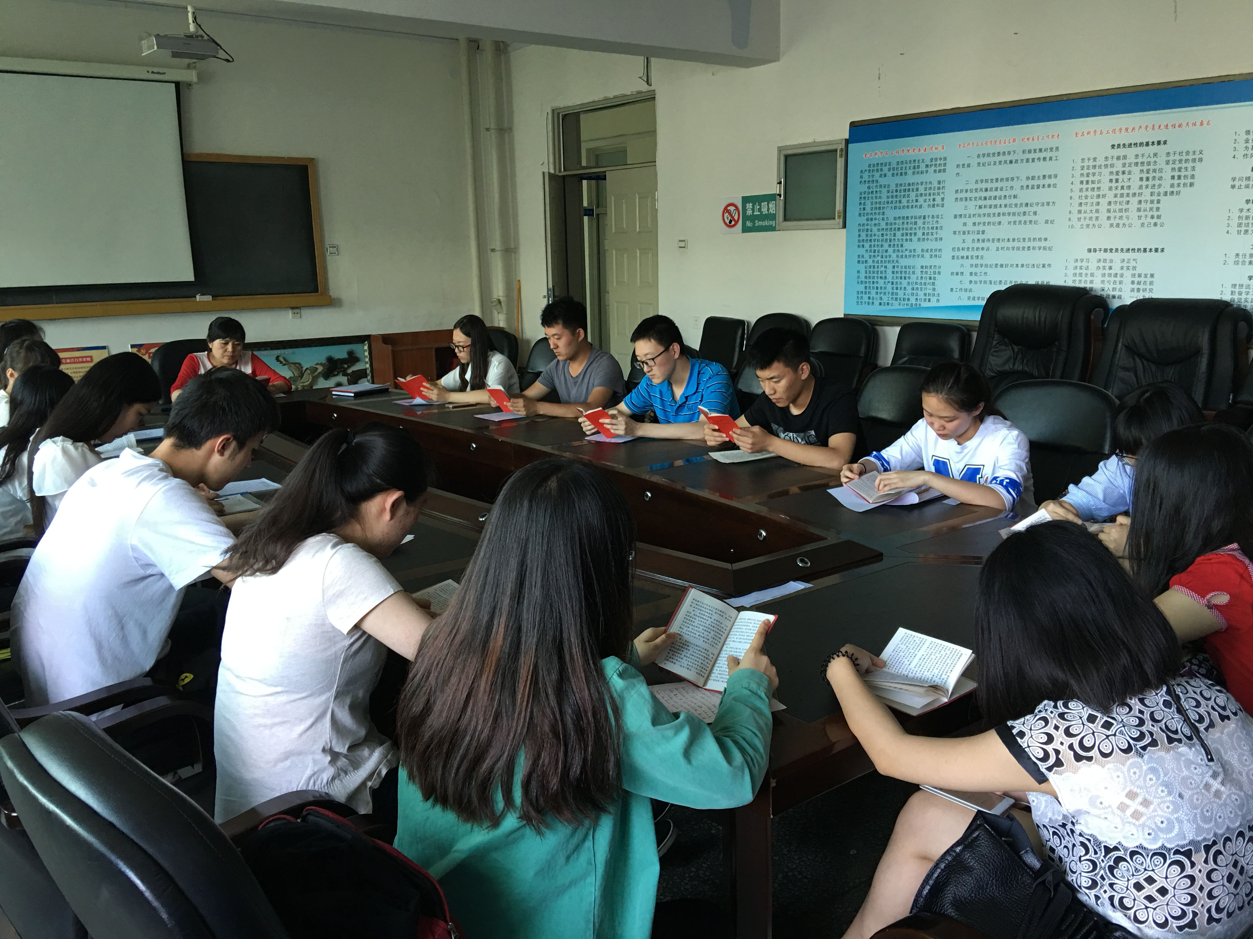 学生党支部在食品楼3楼会议室组织积极分子学习了《中国共产党章程》和《中国共产党党员须知》,会议由学院第一党支部书记郝慧老师主持,第30期全体积极分子参加了此次学习。 本次学习以阅读讨论的形式展开。《中国共产党章程》从继续推进党的理论创新、推进党和国家事业发展、推进党的建设新的伟大工程出发,将我们党在推进中国特色社会主义伟大事业和党的建设新的伟大工程中取得的重大实践成果、理论成果、制度成果体现在党章中,先进创新,与时俱进。《中国共产党党员须知》包含了党的性质、党的最高理想和最终目标、党的行动指南、党员的义务、党员的权利、党组织生活等方面内容,认真学习党员须知、严格遵守党章是入党积极分子所应恪守的底线,是体现入党动机、彰显赤诚之心的直接方式。学习中,积极分子们大声朗读,积极讨论,充分展现出了争当优秀共产党员的热情! 通过学习,入党积极分子们对党章有了更新更高的认识,对我们党的性质、理想目标、指导思想、基本要求有了更深的理解,受到了一次深刻的党的政治理论和基础知识教育,从而也更加坚定了自己的革命理想信念。