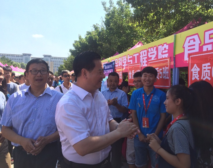 校长李元元及学校相关职能部门莅临指导,高度肯定了我院的迎新工作。值得一提的是,在今天的迎新中,有一位2000年出生的“年轻”大学生,当被问及年龄和对bl动漫