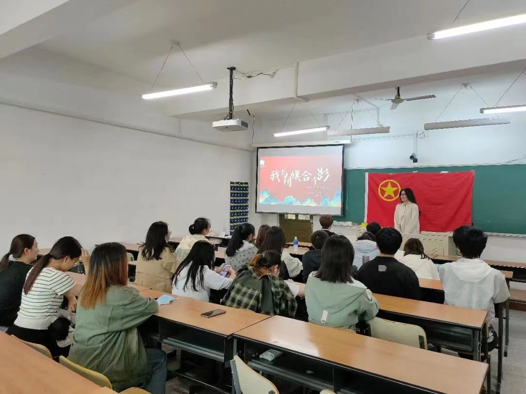 2023年5月17日2022级2班团支部进行了“我与团旗合个影”主题团日活动,大家对团旗及其精神内涵有了更深刻的认识。活动当天对团旗的含义进行了讲解。