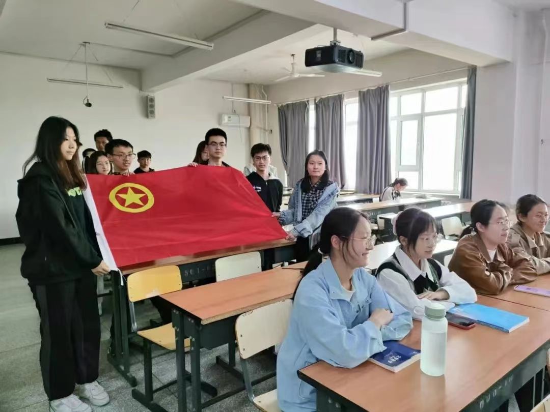 为了让共青团员们更好的了解团旗的含义,努力在实践中学习共产主义,做好中国共产党的得力助手和后备军,2022级6班在5月16号开展了主题为“我与团旗合个影”的团日活动。活动初始,团干部向大家介绍了团旗的组成和象征意义并讲解了一些关于中国共产主义青年团的历史,之后组织了团员集体与团旗的合照,团员们积极创新动作与团旗合照,这反映了大家对团组织的激情。而一面团旗是一种信仰,一张合影是一段青春,用奋斗的激情和团旗一起展示不一样的青春年华。