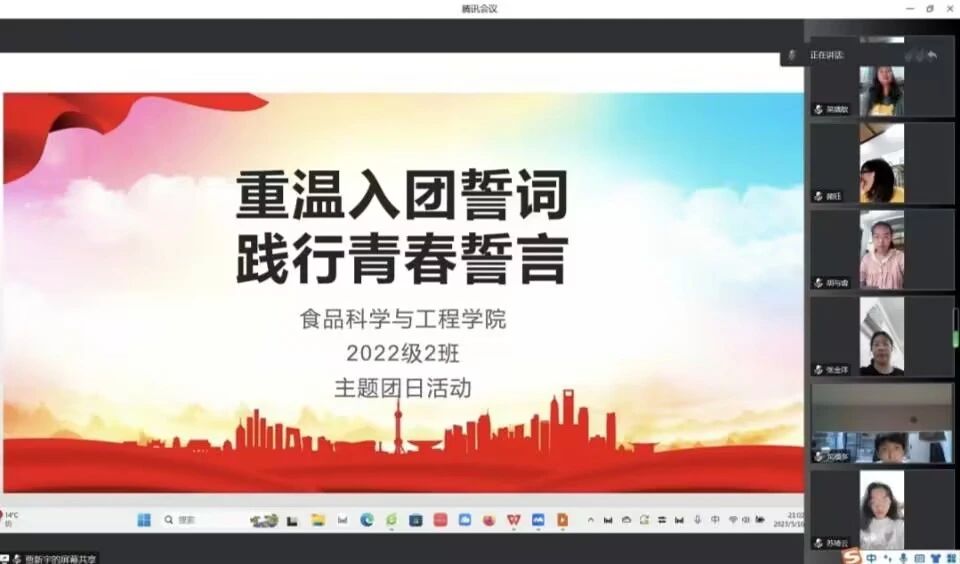 2022级2班团支部于2023年5月16日线上开展了“重温入团誓词,践行青春誓言”主题团日活动,团日活动旨在通过重温誓词勉励每一位团员不忘初心、牢记使命,使每个共青团员都能勇挑时代大梁、勇担时代责任。