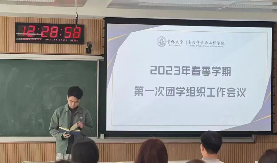 于2023年3月8日在和平校区科学讲堂201教室开展2023年春季学期第一次团学组织会议。团委副书记王新欣老师、2021级辅导员柴普今及团学组织全体骨干成员参加会议。
