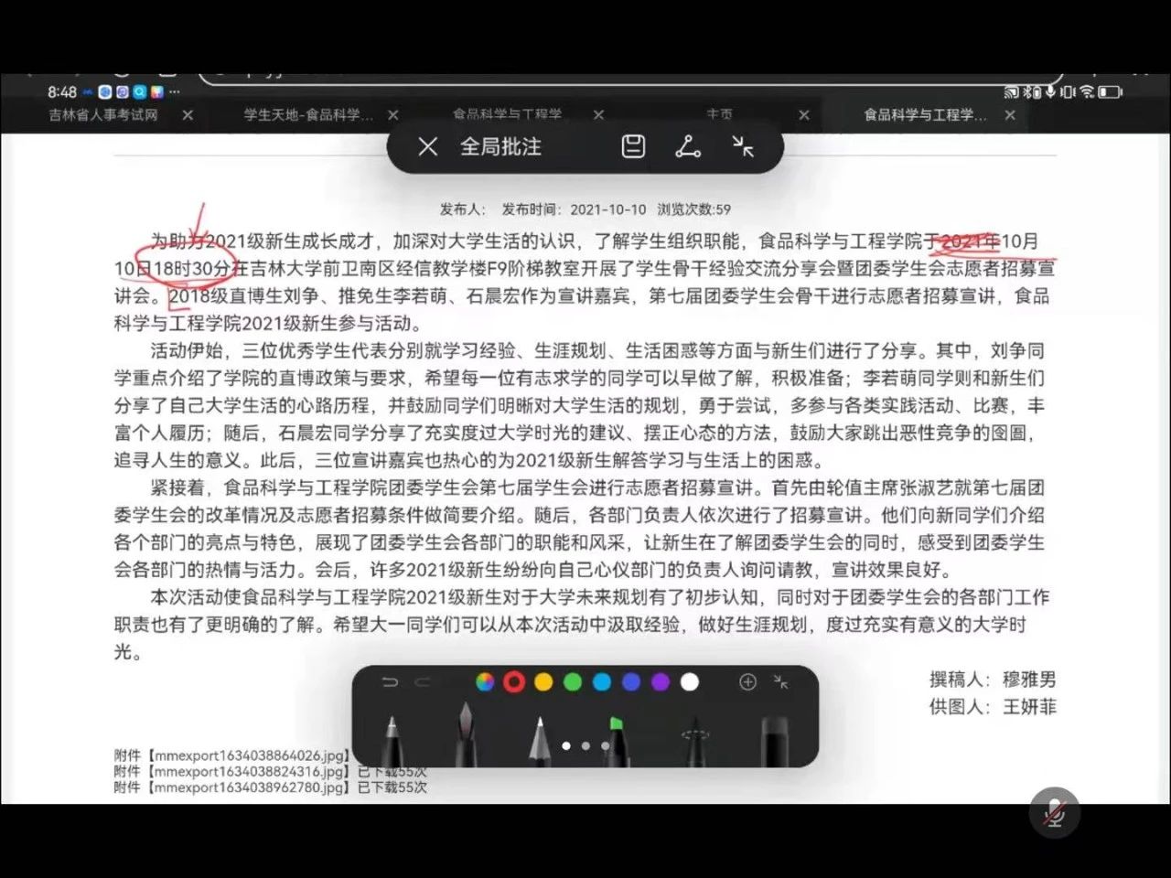 新媒体中心联合团委组织和学生会于2023年9月11日晚七时在腾讯会议线上开展团学组织骨干技能培训活动。培训内容包括新闻稿撰写、推送制作、摄影技能的培训和推送对接相关条例。活动由新媒体中心摄影部负责人凃薇主持,院团学组织骨干成员参与本次培训,并特别邀请2020级优秀学姐陈雅欣对新闻稿部分进行培训。
