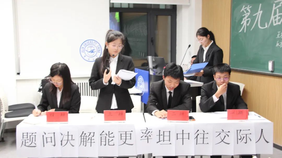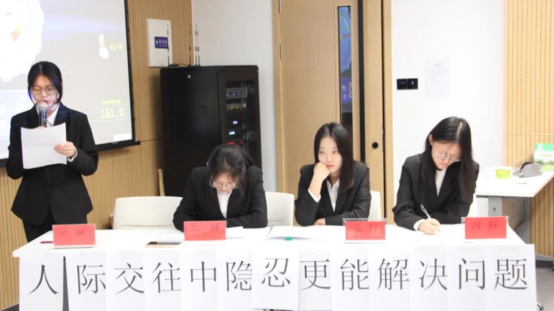 半决赛第二场的辩题是人际关系中坦率/隐忍更能解决问题。正方你怎么敢反队与反方向右看队进行了思想的碰撞。参与第二场比赛的评委有学院团委学术实践部部长董宇曦、学院新媒体中心负责人涂薇、学院辩论队队长于玥、学院团委学术实践部成员李妍抒函。