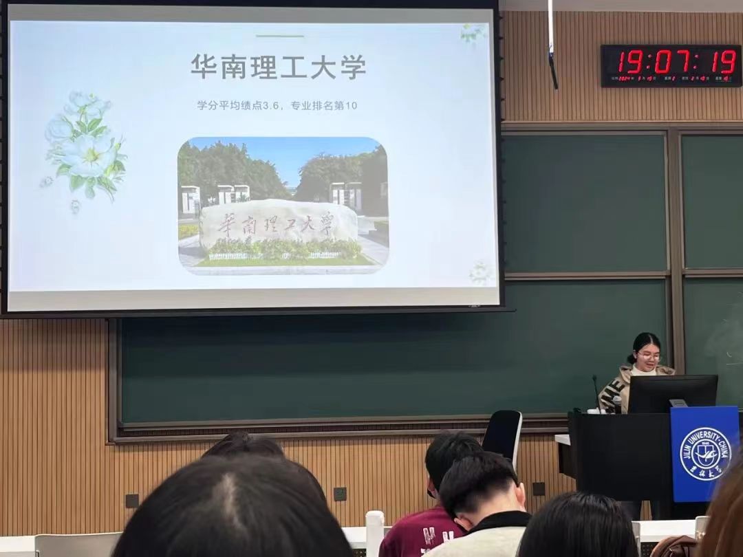 潘培蓓学姐以夏令营预推免的经历,从学硕和专硕二者之间的区别以及不同的侧重方向向同学们介绍了一条新的发展道路。同时她提出参加不同学校开展的夏令营活动能够增加更多成功的机会,并鼓励同学们利用课余时间丰富自己的简历。