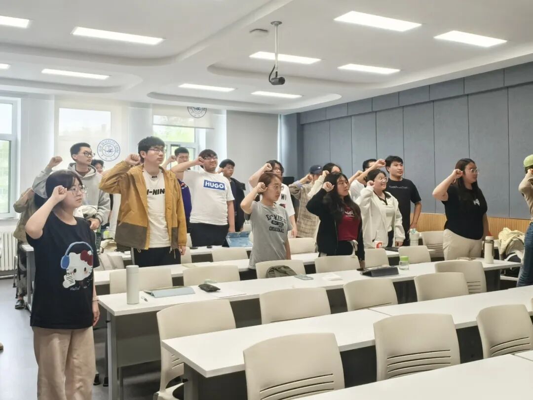 随后,全体团员面向鲜艳的团旗,高举右拳,庄严宣誓。铿锵有力的入团誓词响彻会场,字字千钧的承诺凝聚着青年学子对党忠诚、为国奉献的坚定信念。这一环节不仅是对初心的回溯,更是一次精神的洗礼,激励青年以信仰为舵、以行动为桨,在新时代的浪潮中勇毅前行。