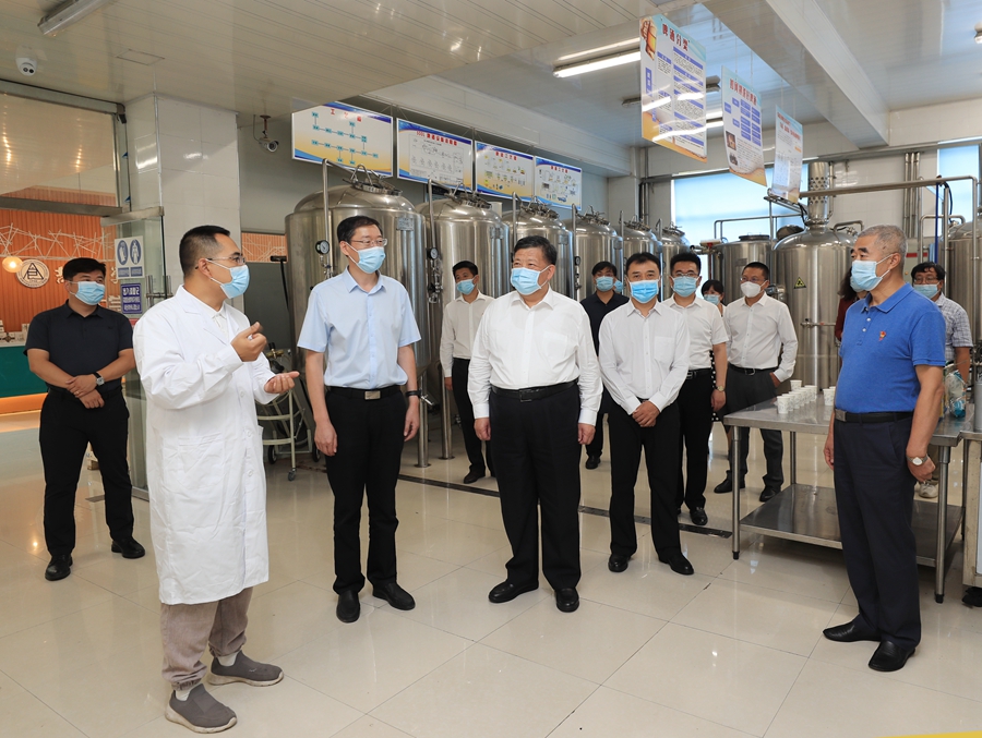 建设。姜治莹走进中心,实地考察食品工艺综合教学示范实验室、大学生众创空间、乳品与生物技术研究室、物性分析室、吉林省人参食品自主创新公共服务平台,详细了解乳清蛋白质分离制备技术、乳清蛋白质功能特性及应用技术、牛内脏生物活性物质的分离制备和高值化开发利用。当得知学院持续科技攻关,助力通榆发酵酸菜、辣白菜出口日本、韩国,实现乡村振兴,姜治莹十分高兴,勉励大家聚焦国家重大科研任务,紧密围绕吉林省农产品精深加工重点项目,开展高水平科学研究,为小食材插上科技大翅膀,努力建设成为国内领先的高层次人才培养基地和高水平成果转化高地,为我国食品产业健康发展贡献力量。