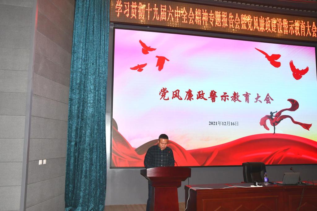 联合举办学习贯彻十九届六中全会精神专题报告会暨党风廉政建设警示教育大会,两个学院全体教职工党员参加了会议。会议由动物医学学院党委书记饶家辉同志主持。