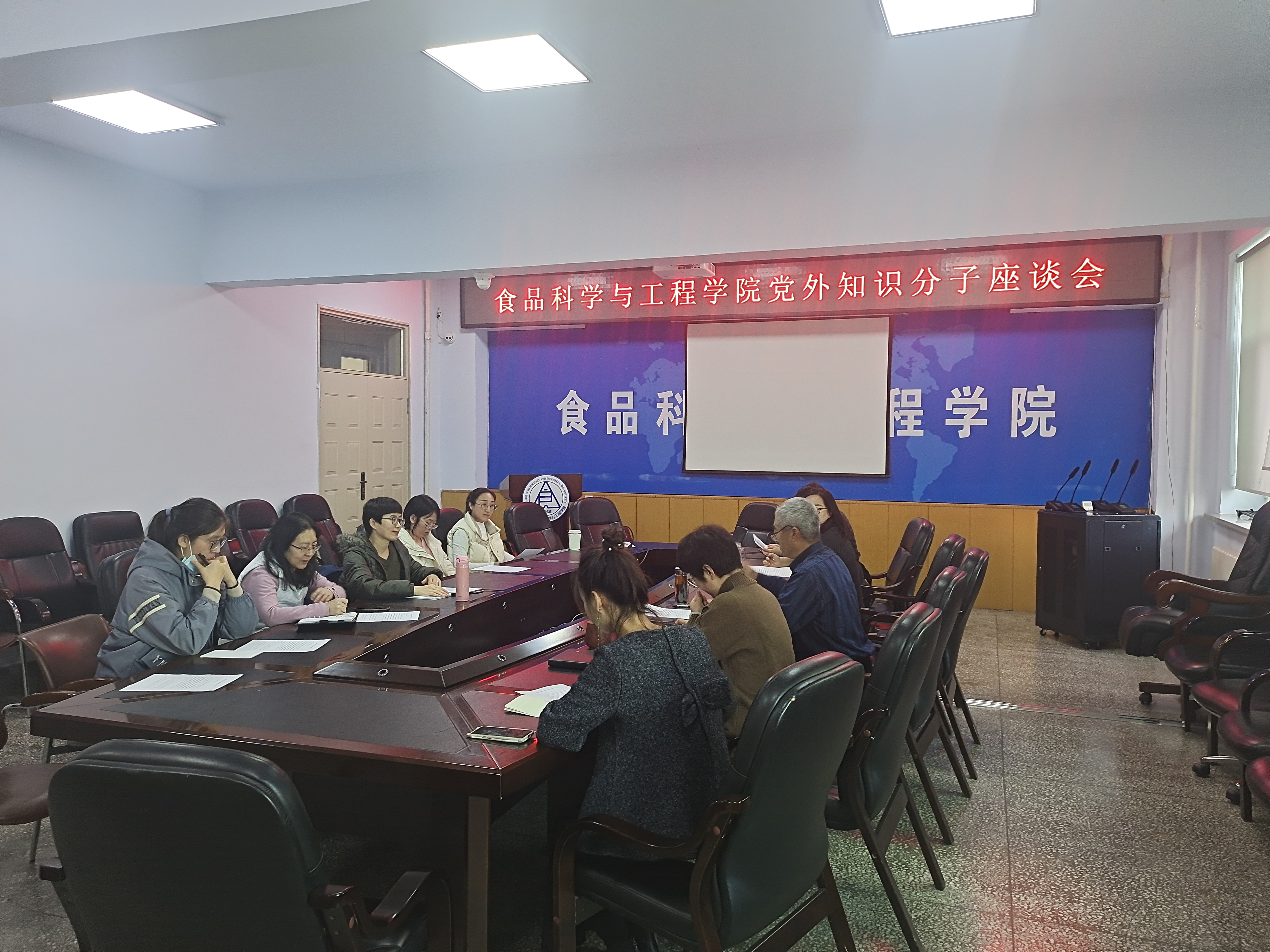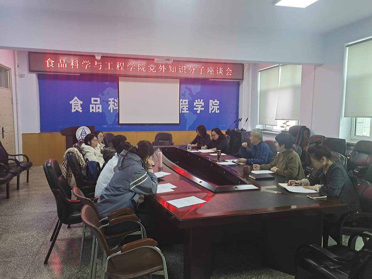在食品楼312会议室召开党外知识分子座谈会,党外知识分子联谊会成员和民主党派教师参加会议,会议由学院党委书记董怀智主持。