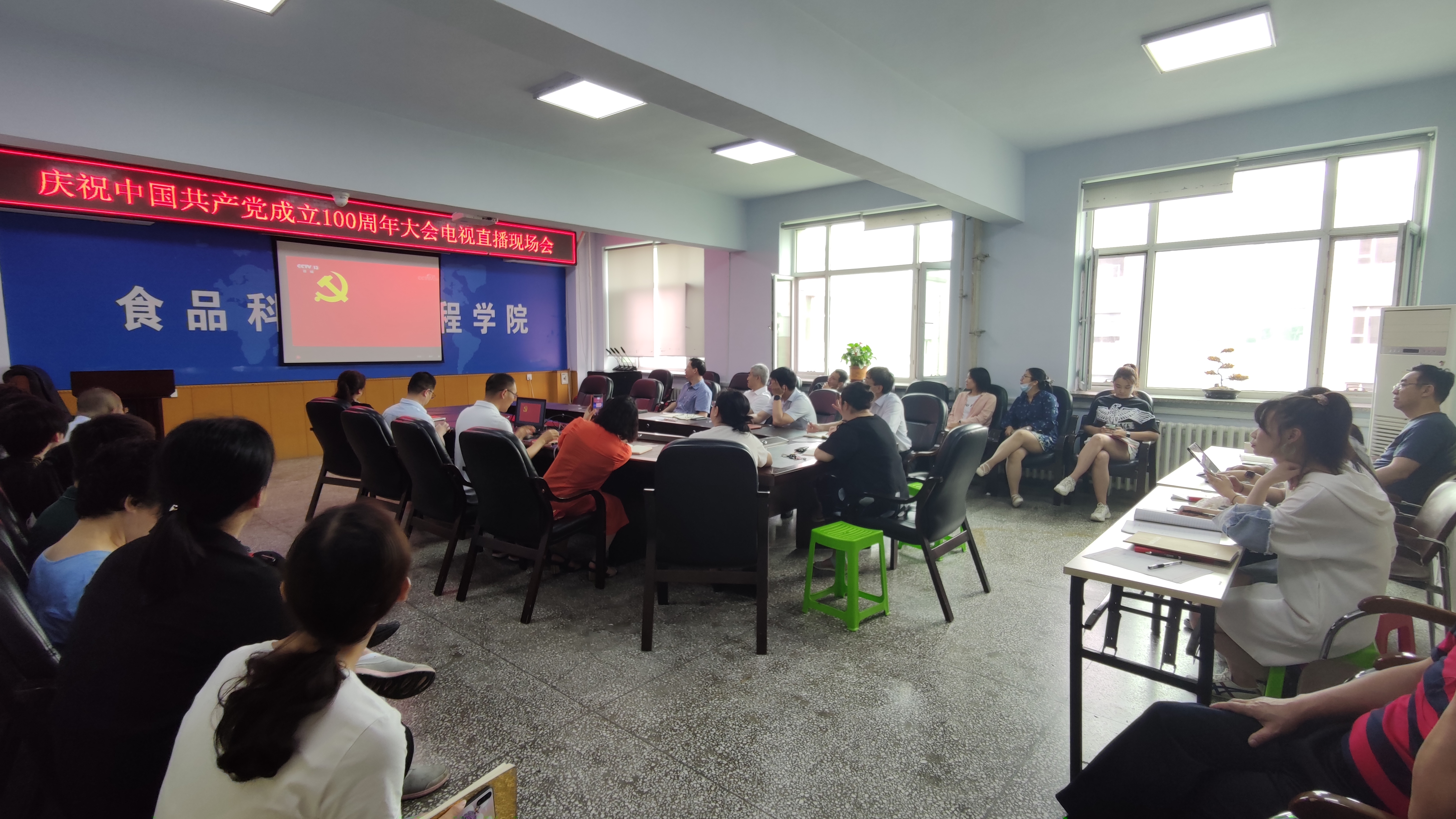 组织学院教工党员在食品楼三楼会议室集中观看庆祝中国共产党成立100周年大会直播。学院领导班子成员、党委委员、党支部书记、全体管理干部、全体教职工党员参加了此次会议。会议由学院党委书记董怀智主持。