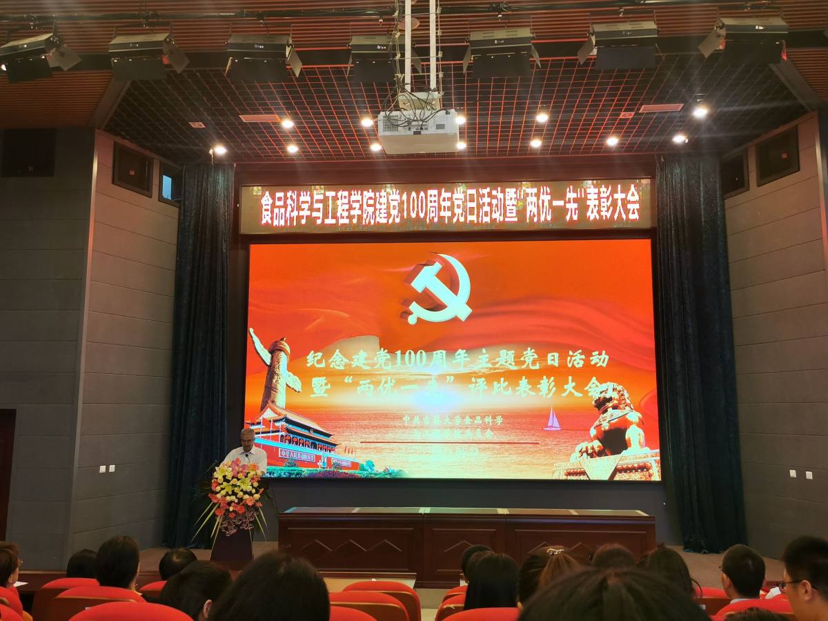 在西区图书馆二楼报告厅举行庆祝建党100周年主题党日活动暨“两优一先”表彰大会。学校党委组织部徐仁元副部长、学院党建工作联络员李明组长、学院党委委员、全体教职工以及学生党员代表参加了此次会议。会议由学院党委副书记李超主持。